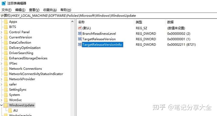 新建一个"DWORD (32-bit)"的项,名字为 “TargetReleaseVersionInfo”,值设置为“21H1”。